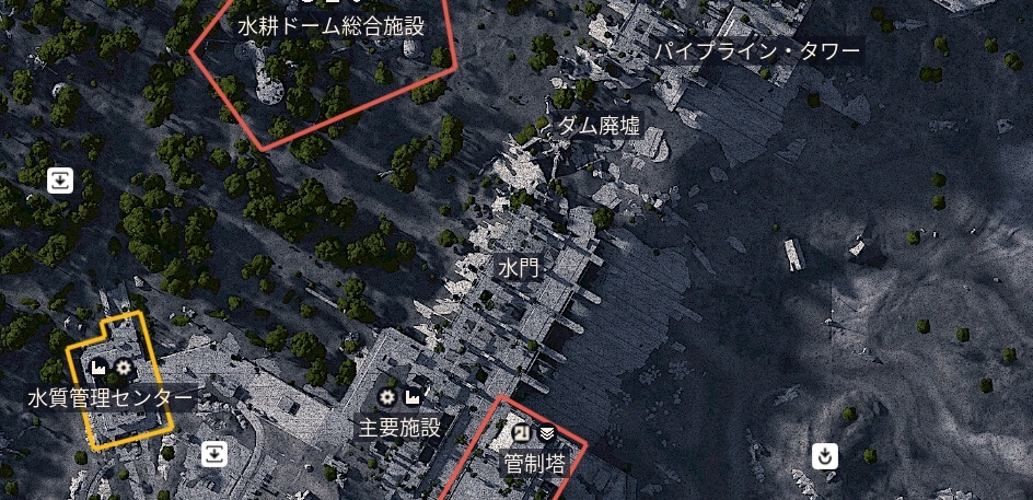 - ダム戦場:屋外の水門付近