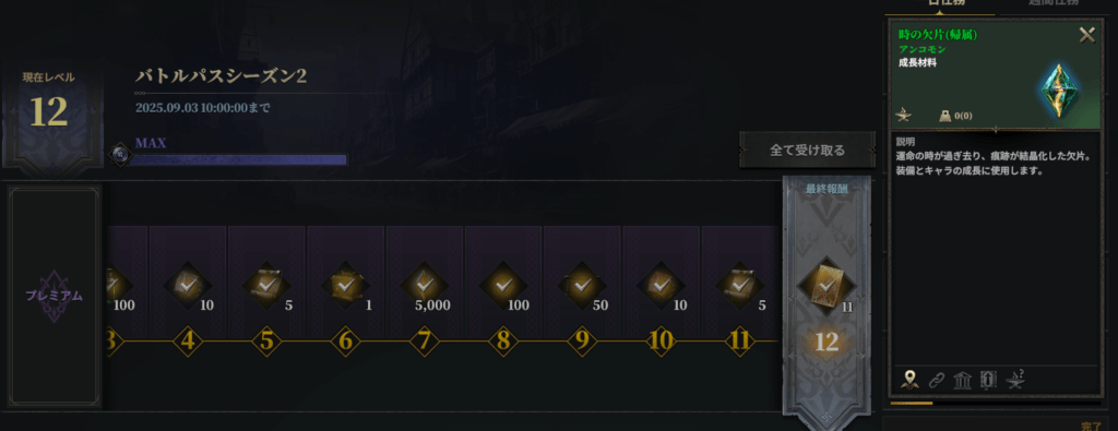 高難易度な一日任務や週間任務などをこなし、バトルパスもしっかりと購入し時の欠片を稼いでいきましょう。